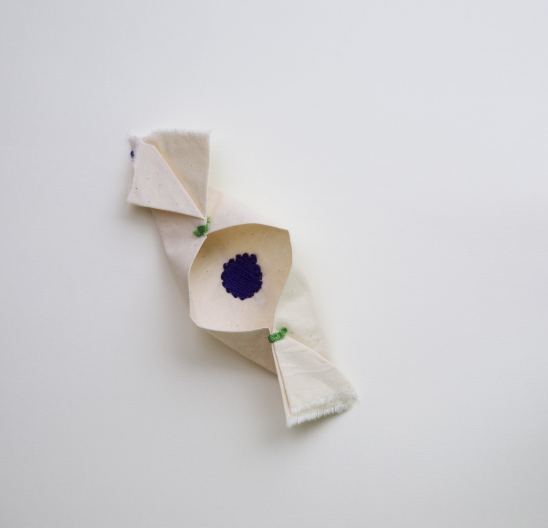 Shy (muslin, embroidery thread, 7” x 7 ½”, 2014)