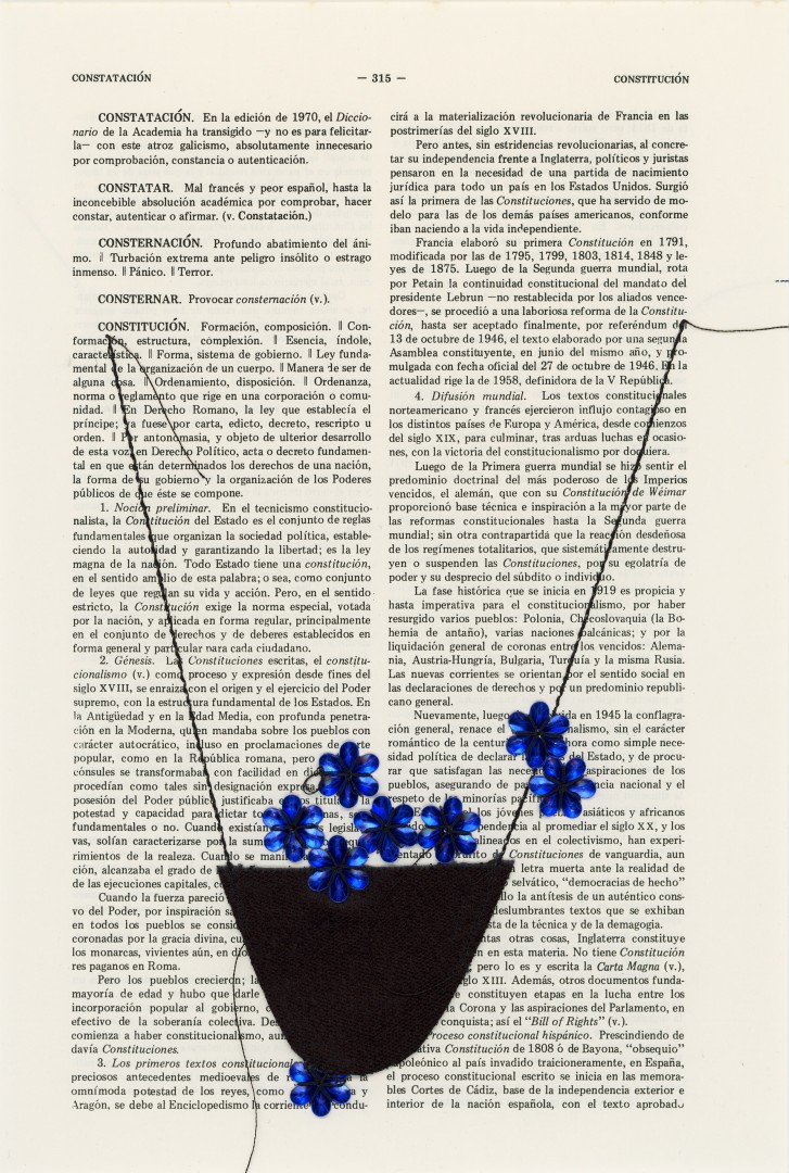 Constitucion (Constitution) (paper, thread, fabric, beads, 7” x 10 ½“, 2013)
