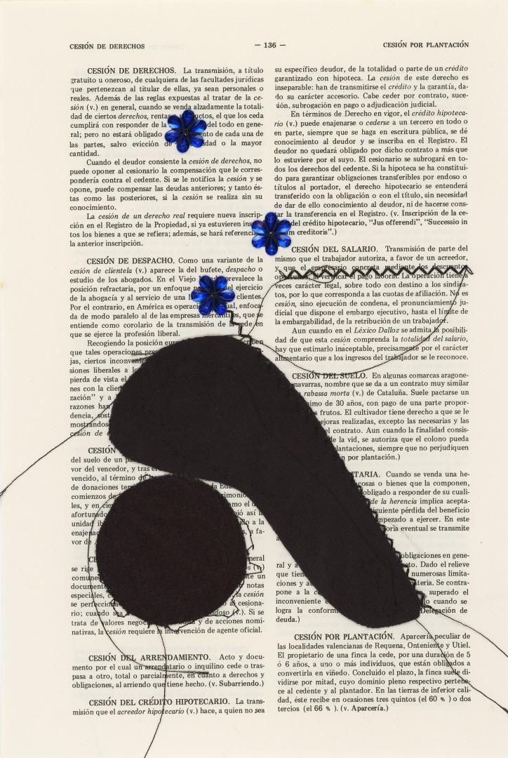 Cesion por Plantacion (Plantation Assignment) (paper, thread, fabric, beads, 7” x 10 ½“, 2013)