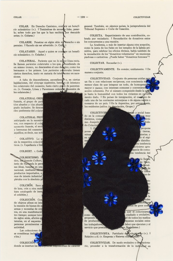 Colectivizar (Collectively) (paper, thread, fabric, beads, 7” x 10 ½“, 2013)