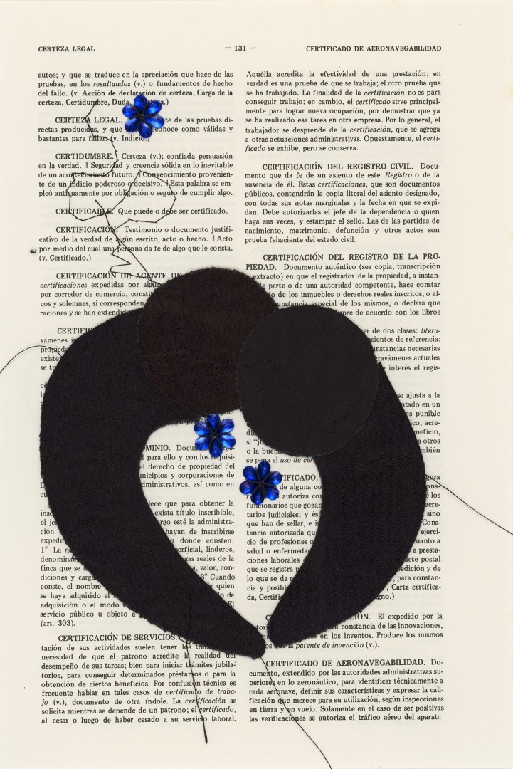 Certeza Legal (Legal Certainty) (paper, thread, fabric, beads, 7” x 10 ½“, 2013)