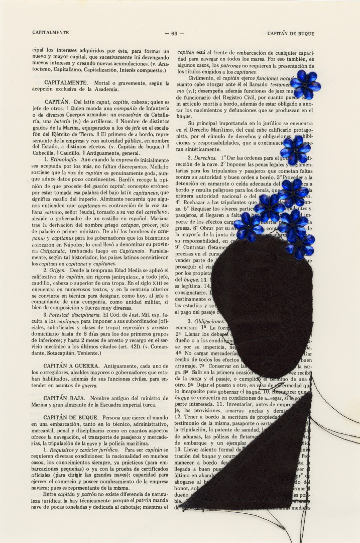 Capitan del Buque (Capitan of the Vessel) (paper, thread, fabric, beads, 7” x 10 ½“, 2013)