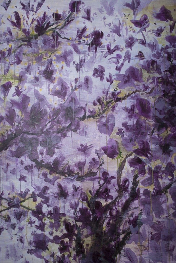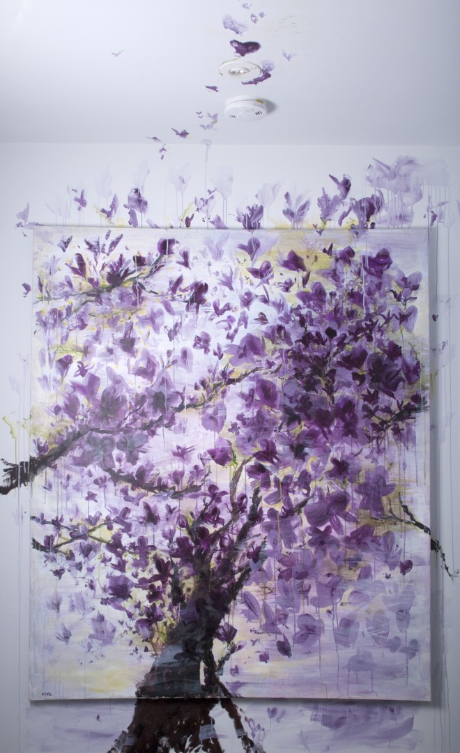 My Thoughts in purple (installation in-situ, acrylic on canvas, 5 x 6 ft., 2013)